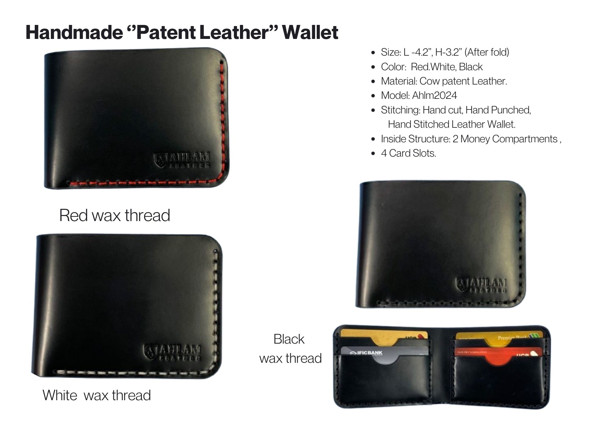 Crafted from premium patent leather, this handmade wallet brings together timeless elegance and modern polish. Its glossy finish catches the light beautifully while staying durable for everyday use. Inside, every stitch shows care — with neat compartments for cards, cash, and essentials. Slim enough to slip into your pocket, yet bold enough to make a statement.